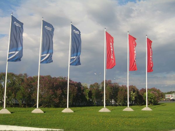 Для подобных конструкций чаще всего выбирают алюминиевый флагшток. Лёгкий вес облегчает монтаж, а антикоррозийные свойства алюминия позволяют использовать такие флагштоки на открытых площадках в течение десятков лет без потери внешнего вида.