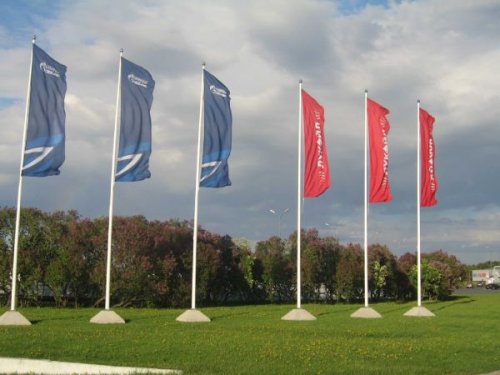 В Казани на территории нового бизнес-центра установили ряд флагштоков с внутренней системой подъёма и встроенной подсветкой. Теперь флаги всегда выглядят аккуратно, а вечером они становятся настоящим украшением площади перед зданием.